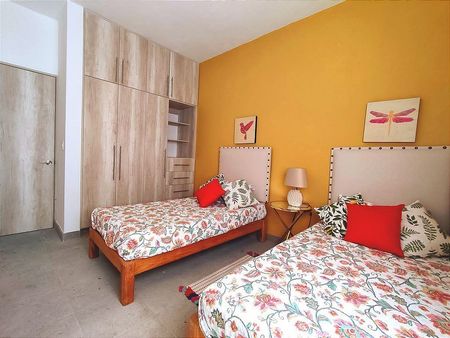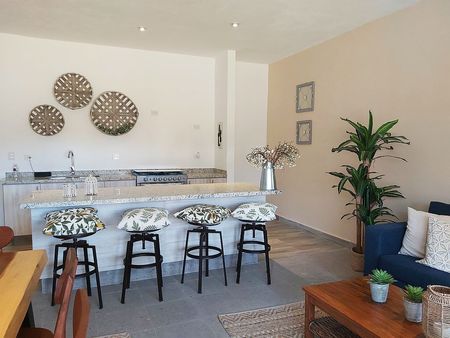 Cuenta con terraza con vista a la alberca, con gran luz natural, moderno y cómodo.